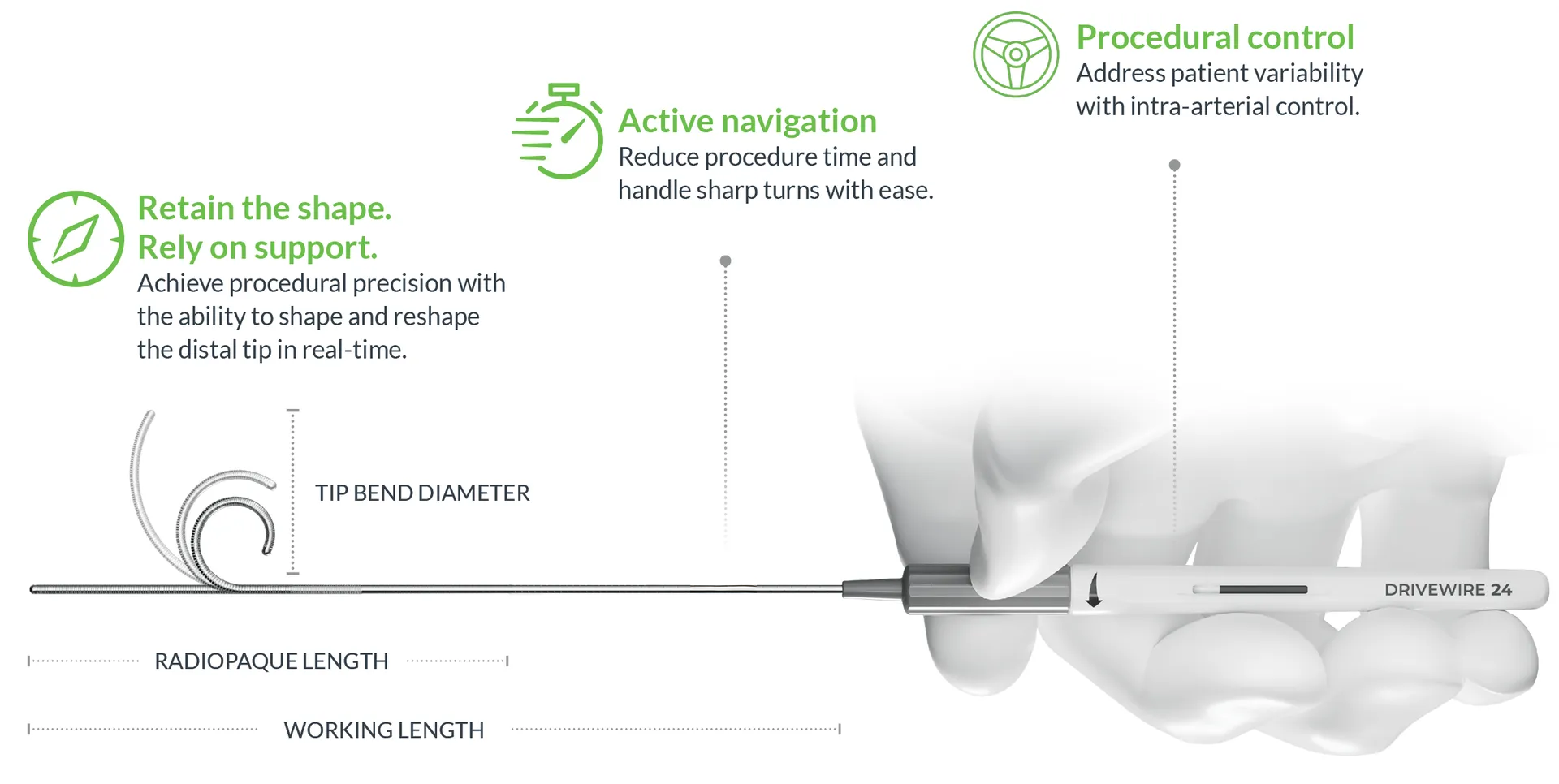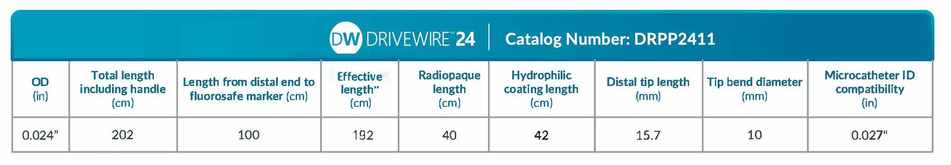 Contraindications: Drivewire™ 24 Guidewire is contraindicated for patients with known hypersensitivity to nickel-titanium and patients with stenosis and/or pre-existing stent proximal to the target site that may preclude safe navigation of the device.